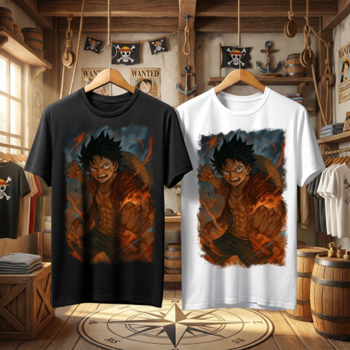 Μπλουζάκι με print βασισμένο σε αυθεντικό έργο του Heartcore project. Αν είσαι fan του One Piece, αυτό το T-shirt είναι για σένα. Το σχέδιο είναι εμπνευσμένο από τον Monkey D. Luffy, σε μια δυναμική πόζα μέσα στις φλόγες, με έντονα χρώματα και εντυπωσιακή λεπτομέρεια.